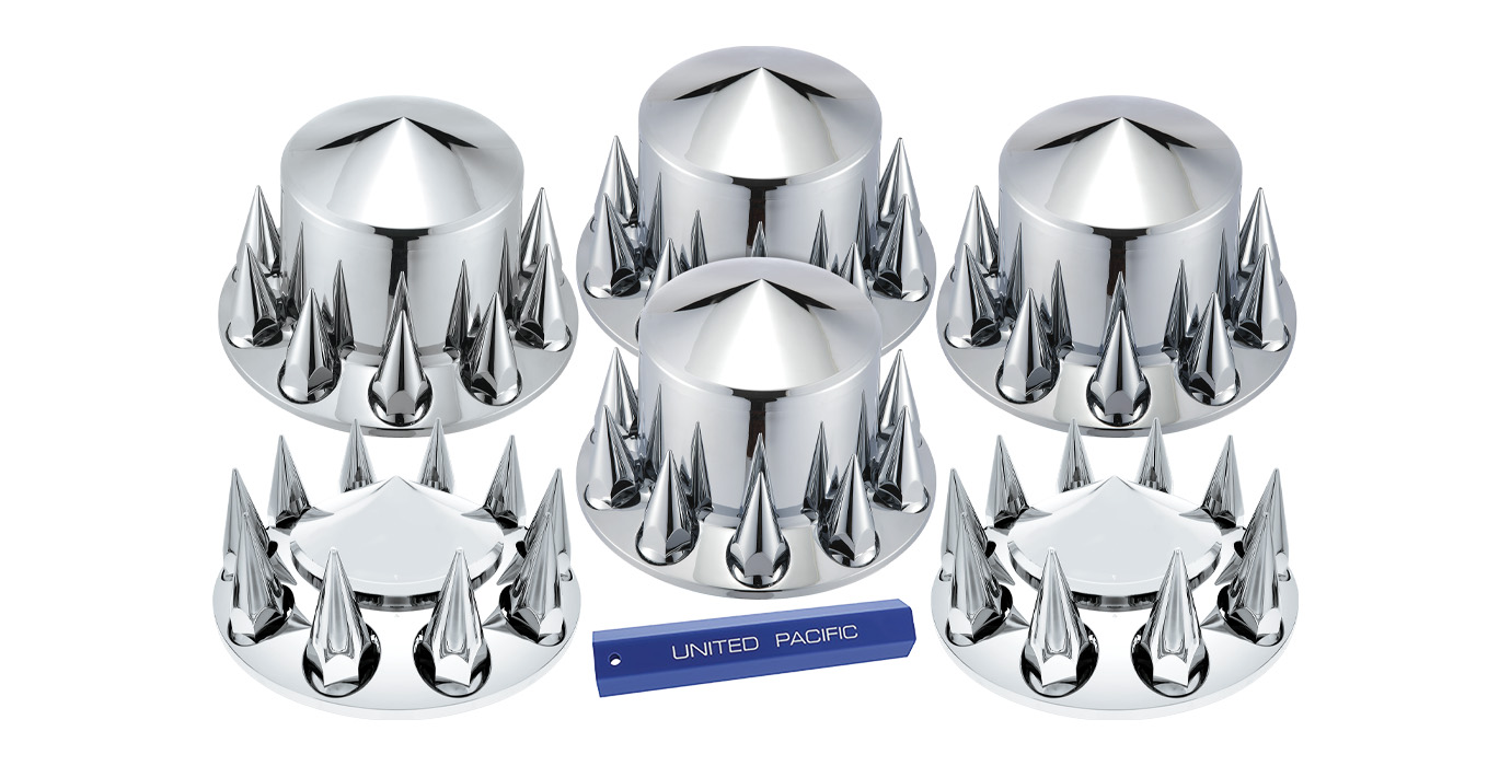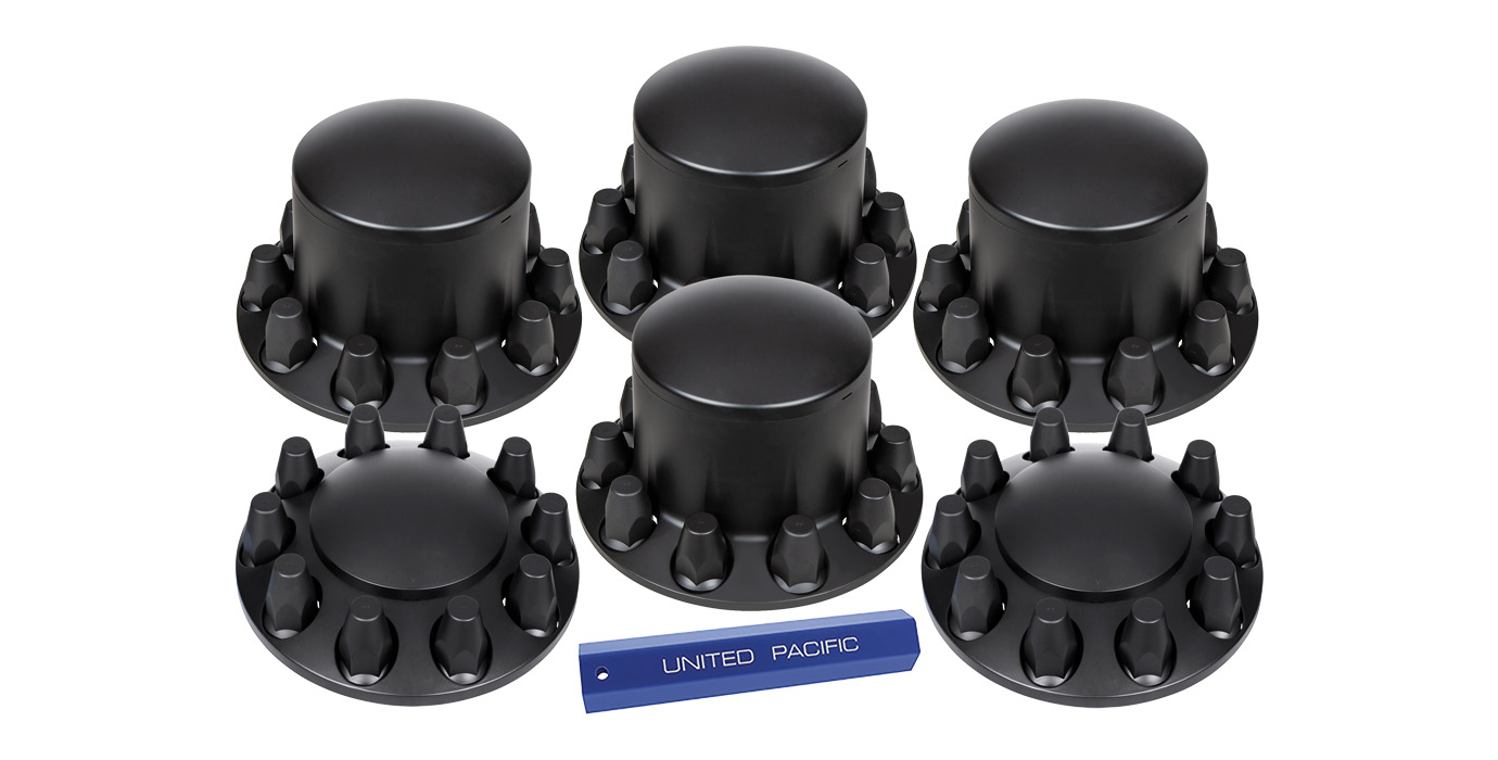 United Pacific offers complete kits for both front and rear axles, including all necessary nut covers and installation tools. Choose kits in chrome or matte black to match your fleet’s style. Kits are designed for universal fitment on most 11-1/4" bolt circle/center wheels, making installation straightforward for professional shops or DIY applications.
